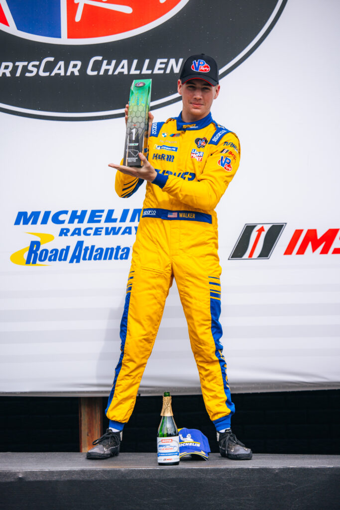 Jake Walker continued his dominant performance in VP SportsCar Challenge with two wins from pole position in his No. 6 BMW M4 GT3. The 19-year-old claimed his sixth consecutive victory and ninth win of the season. Walker previously secured wins at Circuit of the Americas, Mid-Ohio Canadian Tire Motorsport Park, and VIRginia International Raceway before sweeping the weekend at Michelin Raceway Road Atlanta.